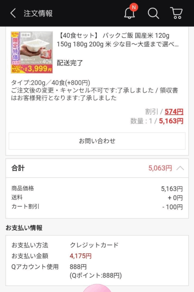 | Qポイント利用 | −888円相当 ※1pt=¥1 |