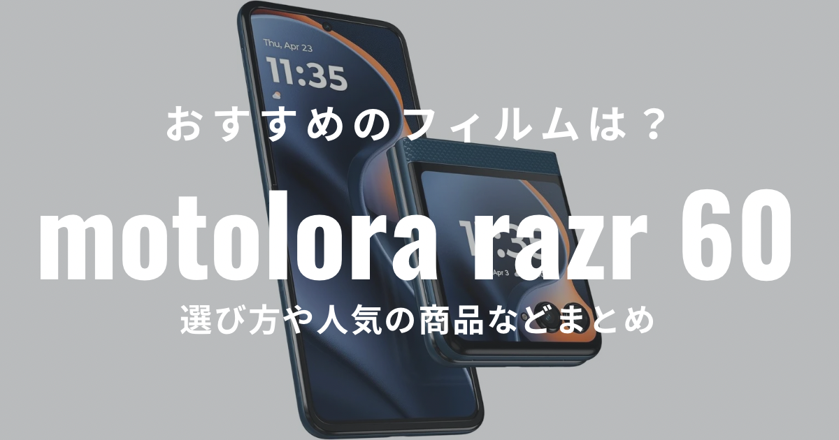 『motorola razr 60』におすすめなフィルムを紹介しています。フィルムの種類を始め、選び方や人気のフィルムなども紹介しているので「どのフィルムが良いんだろう?」と悩んでいる方の参考になれば嬉しい限りです。